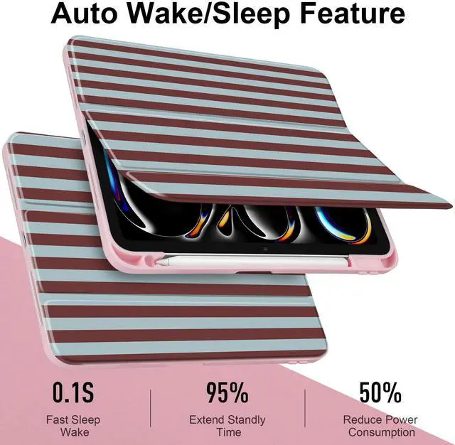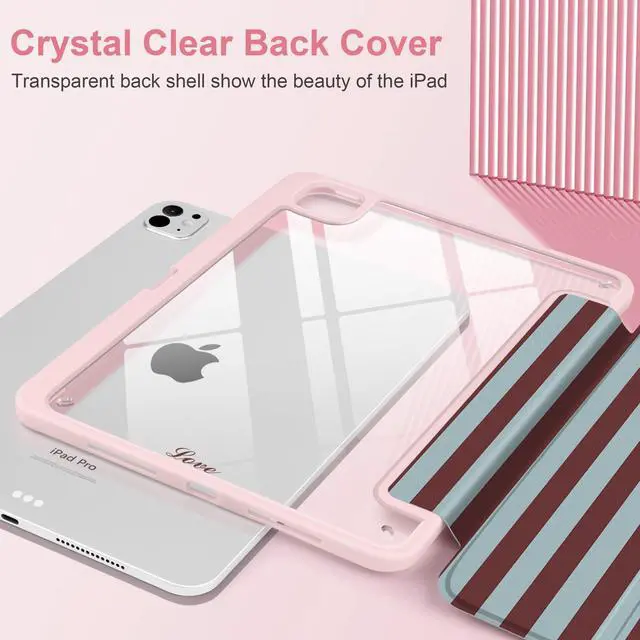 TPU Bumper: The transparent hard back shows off your iPad or artwork while resisting scratches. Soft TPU edges absorb shocks to protect against drops and daily wear, while the soft interior lining protects the screen without adding bulk. ^^ Auto Sleep/Wake & Slim Protective Design: Automatically wakes your iPad when opened and puts it to sleep when closed, helping save battery life. Precise cutouts provide easy access to Touch ID, buttons, ports, speakers, and other functions