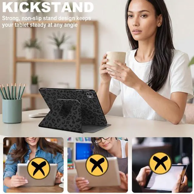 Models: A2316 / A2324 / A2325 / A2072 / A2588 / A2589 / A2591). Please check the back of your iPad to find the model number Axxxx before purchase to ensure the perfect fit. ^^ 360 Rotating Kickstand Multi-Angle Viewing Built-in 360-degree rotating stand with three stable anti-slip grooves, allowing the tablet to stand securely in both landscape and portrait modes. Offers multiple adjustable angles for comfortable viewing, typing, reading, or video calls ideal for home, office, or travel use ^^ Premium PU Leather + TPU Back Full Protection Made of durable synthetic PU leather exterior and flexible TPU inner shell, this ipad pro 11 inch m5 case provides comprehensive protection against scratches, drops, and daily wear. The shock-absorbing TPU back shell keeps your device safe while maintaining a slim and lightweight profile ^^ Auto Sleep / Wake Function Save Power Easily Integrated magnetic closure supports auto wake/sleep feature. When you open the cover, your tablet wakes instantly; close it, and it automatically sleeps conserving battery life and extending device longevity ^^ Precise Cutouts Easy Access to All Features Accurate cutouts provide full access to all ports, buttons, cameras, and speakers without removing the case.