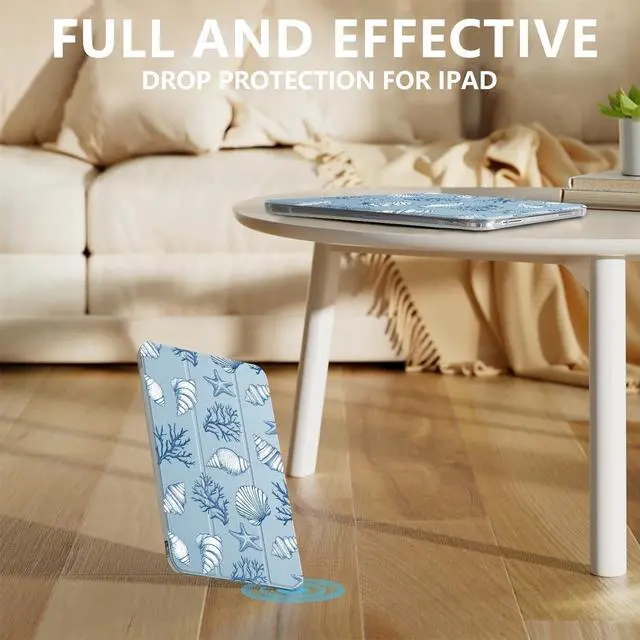 ^^ Adjustable angle: The trifold stand shell design of this cartoon cute sea case for apple ipad can easily change the angle to meet your viewing and typing needs. This lovely watercolor case for ipadcan be folded into a stable triangle, firmly supporting your pad. Whether it's work, study, or watching movies, they can meet your needs ^^