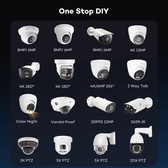 6MP Superior Definition-- 6 million pixels, 122 diagonal field of view. ^^ Smart AI Human Vehicle Detection-- Reduce false alarms and save storage space. ^^ Capture and Record Audio-- Cameras capture sound and NVR record it. Output audio to a HD TV or mobile APP. ^^ IP66 Durable Housing-- Metal housing, indoors or outdoors, fully weatherproof. ^^ Infrared Lights-- Enable infrared lights automatically at night, IR night vision up to 100ft. ^^ Add-on to ONWOTE System-- Work with ONWOTE 12MP/ 8MP PoE NVR or PoE switch with 48V-54V power supply.