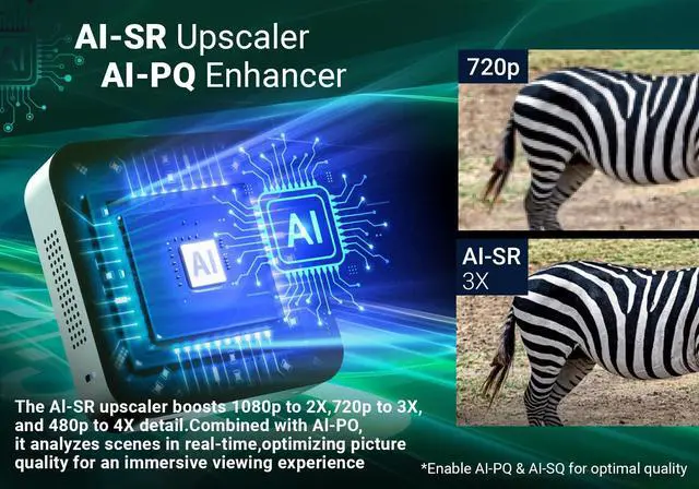 Menu Navigation: The U8K - ULTRA elevates home entertainment with its outstanding BD-Rip playback. It supports high - quality BD video and offers intuitive menu navigation. You can effortlessly browse BD menus, pick favorite scenes, access special features, and enjoy a cinema - like experience at home. It's ideal for movie fans who want to relive films in all their splendor ^^ Enhance your visuals with AI-powered technology. The AI-SR upscaler boosts 1080p to 2X, 720p to 3X, and 480p to 4X detail. Combined with AI-PQ, it analyzes scenes in real-time, optimizing picture quality for an immersive viewing experience. Enable both AI-PQ/AI-SQ in [Settings Network&InternetDevice PreferencesMINIX Settings AI-PQ] for optimal quality ^^ Dual-Band 2x2 MIMO 802.11 ax Wi-Fi 6 and