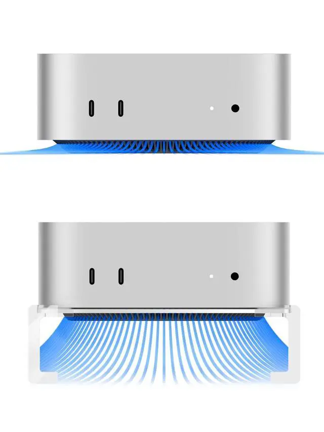 Enhanced Cooling Performance: One of the standout features of this Mac Mini PC Stand is its ability to improve airflow and cooling efficiency. By lifting your Mac Mini off the desktop, the stand creates additional space underneath, allowing for better ventilation. This design helps prevent overheating, ensuring your device runs smoothly even during intensive tasks. Say goodbye to the heat buildup that occurs when your Mac Mini sits flat on the desk! ^^ Premium Materials for
