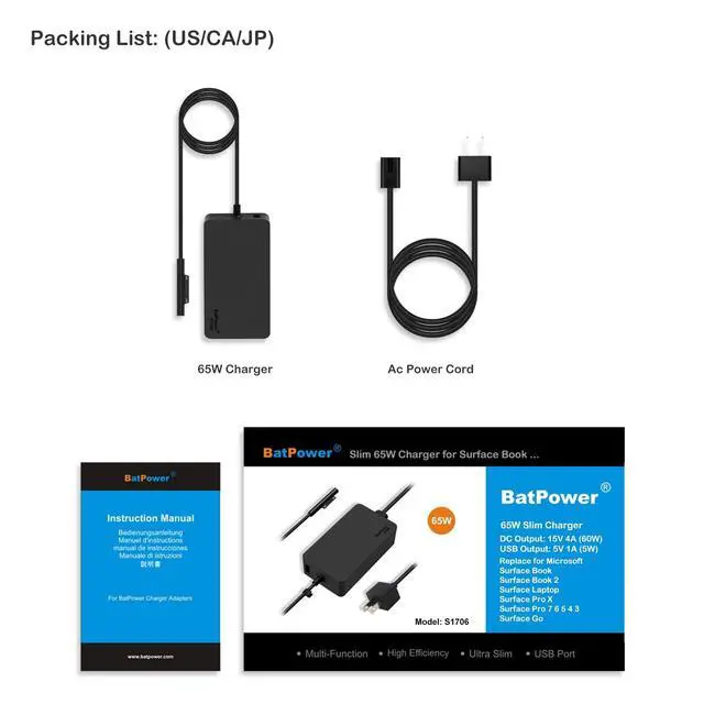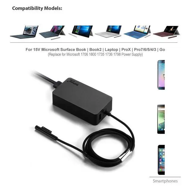 AC Adapter: Engineered as a seamless substitute for the original 1706 power supply, offering plug-and-play convenience. No extra setup or adapters required, making it a reliable backup or replacement charger for Surface users. ^^ Wide Compatibility with