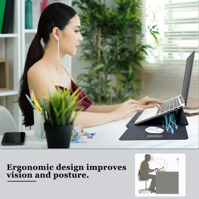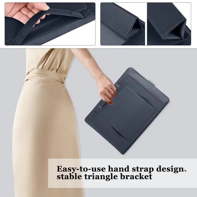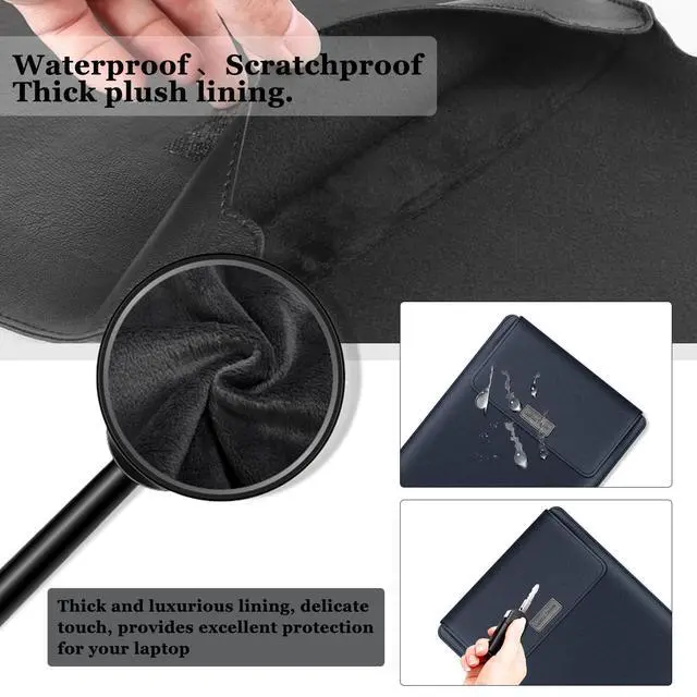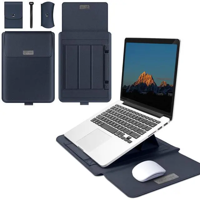 Wide CompatibilityOur laptop sleeve is compatible with: MacBook Air 13" 2026-2020 M5 /M4 (A3240) /M3 (A3113) /M2 (A2681) /M1 (A2337); MacBook Pro 14" M5 Pro/M5 Max 2026/M5 2025/M4 Pro (A3401) /M4 Max 2025 (A3185) /M4 2024 (A3112) /M3 (A2918) /M3 Pro/M3 Max (A2992) /M2 Pro/M2 Max 2023 (A2779) /M1 2021 (A2442); MacBook Pro 13" M2 2022 (A2338) /M1 2020 (A2251); MacBook Air (13") 2020 (A2179). It also supports Surface/Lenovo/HP etc, but does not support laptops thicker than 2cm. ^^ Ultimate ProtectionThis laptop sleeve features a premium, waterproof PU leather exterior that effectively protects your laptop from scratches and water damage. Its soft, smooth surface is easy to clean. The interior is lined with a thick, plush material to effectively shield your device from bumps and dust. ^^ Innovative 3 in 1 FuntionThis laptop sleeve combines a laptop stand, laptop protective, and mouse pad in one. The flap doubles as a mouse pad, and the stand features a foldable design. Compact, lightweight, and stylish, it's perfect for travel or office use. ^^ Adjustable StandThe foldable triangular stand accelerates heat dissipation and extends the life of your laptop.
