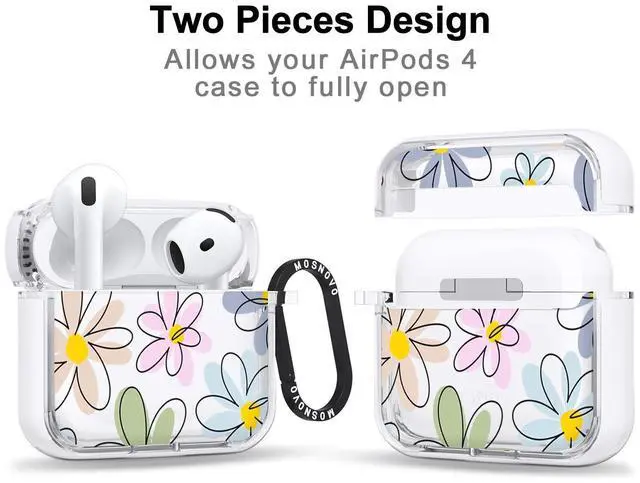 MOSNOVO Case for Airpods 4, Protective Clear Case with Shockproof Dual Layer Hard Luxe Metal Ring Designed for Airpods 4 Generation - Linear Blooms