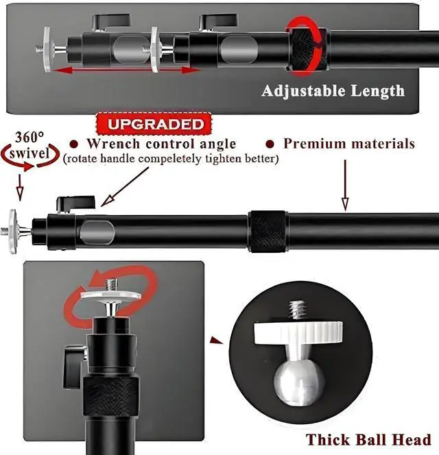 VERY FLEXIBLE: Pivot head for a 360 horizontal rotation and 90 tilt ( loose and rotate the head to get 180 tilt. threads on pivot ball head to increase friction). 4.