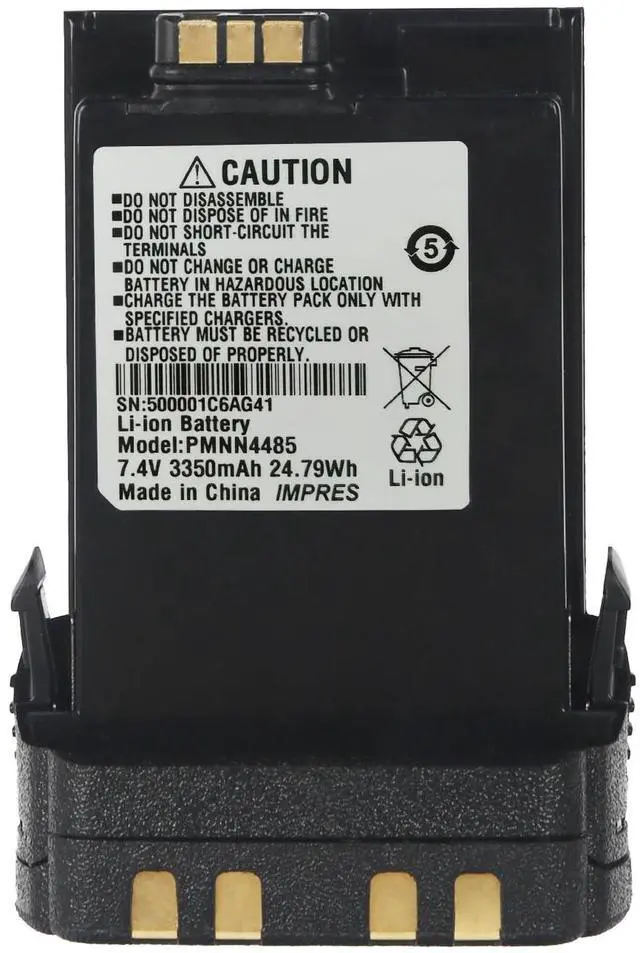 Product specifications: This NNTN7034 NNTN7038 NNTN7034B PMNN4485 PMNN4485A battery replacement has a capacity of 3350mAh, is made of Li-ion polymer, and operates at 7.4 v voltage with impres 2 function. ^^ Completely compatible with APX6000 APX6000Li APX7000 APX8000 APX 6000XE APX 7000XE APX 8000H APX 8000HXE SRX 2200 impres 2 radios. ^^ The newest complex technology improves battery life and wellness. Our batteries are all new. Built-in AA class battery cells and microchip chips offered safety against overheating, overcharging, overload, and short circuits.