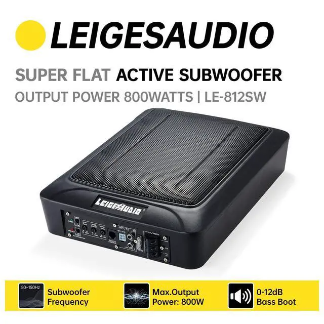 Housed together in a cast enclosure is 8x12" subwoofer with a built in RMS 150W amplifier