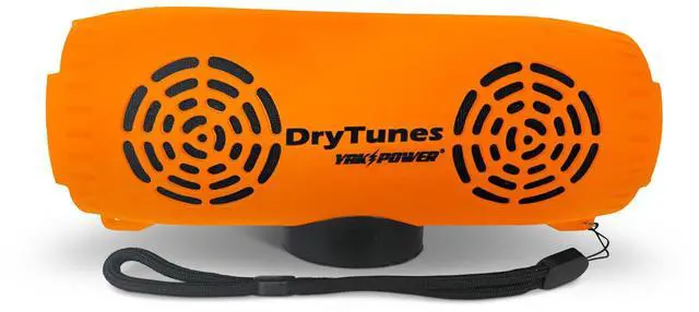 Speakers FLOAT (Note: The speaker is very durable against weather and water however it is not designed for "in water" or "in pool" use that can lead to water intrusion. The floating nature of the product is to assure retrieval should it fall out of your kayak or off of your SUP. ) ^^ CONNECT MULTIPLE SPEAKERS TOGETHER - Featuring Party Button music sharing (Unlimited connections within 200ft range) ^^ PLAYBACK Get up to 10 hours of Music Playback at Full Volume and up to 40 Hours of Music Playback at Half Volume Power by Our Dual Lithium Batteries ^^ MOUNTING OPTIONS Removable Magnetic base with -20 Threaded Insert compatible with most Action Mounts. Quick Release Stem Clamps (sold separately) for mounting to e-bike handlebars, scooter stems, grab rails, and other outdoor applications. ^^ IN THE BOX A Magnetic Base with Rail Mountable Steel Pad and t-Nut, USB Charging Cable, and Wrist Strap ^^ COMPATIBILITY Drytunes Floating Bluetooth Speaker is Compatible with Magnetic Mounts (north pole up)