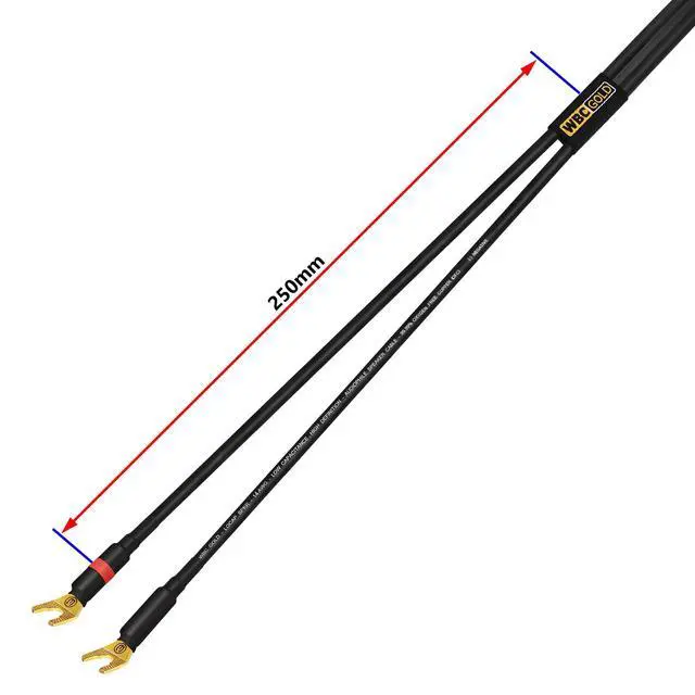 3 Foot - WORLDS BEST CABLES - WBC-GOLD-LOCAP-SPKR-14 AWG - High Purity OFC ( 99.99 % OFC) High-Strand Count (368 x 0.12 mm Both Cores) Audiophile HiFi Speaker Cable Pair, terminated with Eminence 3 micron, 24k Gold dual-plated, audiophile-grade multi-spade (compatible with 8mm and 6mm binding posts) connectors (2x Spade to 2x Spade) and Tough, Ultra-Flexible PVC Jacket. Each cable consists of two (2), 14 AWG conductors. A must for the discerning individual beginning the journey of an Audiophile. We at WBC always make world-class cable assemblies using many of the leading cable and connector brands, if you are unable to find the length and type of cable you are looking for, please feel free to contact us, and we will strive to assemble the required cable for you.