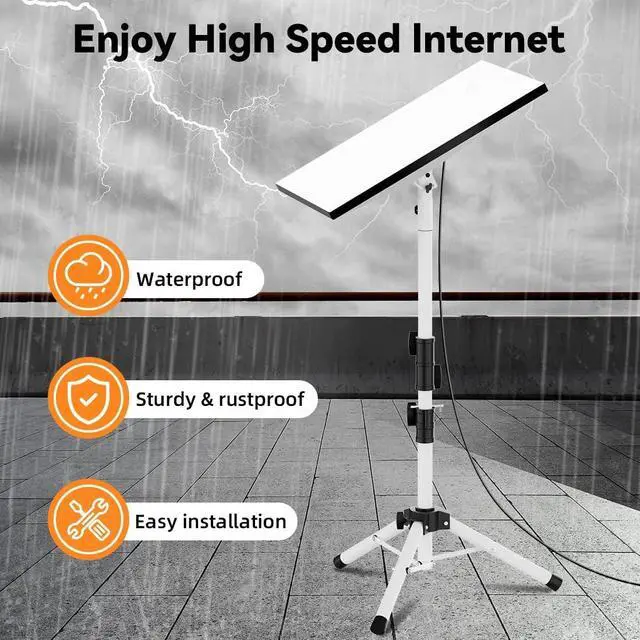 Compatible with Starlink Gen 3This Starlink tripod mounting kit includes a Starlink Gen 3 pipe adapter, Adjustable Starlink antenna reception angle ensures high-speed, stable internet connectivity ^^ Enhanced Stability DesignWhen used on soft ground, ground spikes can be inserted into the soil to ensure greater stability for the Starlink Standard Mount and Starlink equipment ^^ High QualityStarlink Tripod Mount constructed of durable reinforced Iron, rust and corrosion resistance, adjustable Height from 28.5 to 55.9 Inch ^^ Enhanced Stability DesignTubes of the heavy duty Starlink Mount Gen 3 are secured with knobs for a stronger connection to avoid loosening and slipping, ensuring the stability of the satellite in all environments ^^ Convenient to CarryIncludes a storage bag that holds all tripod components, retractable design for easy portability, suitable for various outdoor scenarios such as camping, travel, and RV use ^^ Easy to installYou can watch the video and instruction manual for installation.