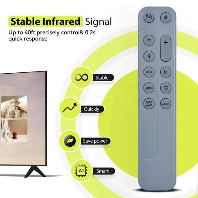 Remote CompatibilityCompatible with model BAR 300 BAR 500 JBLBAR300PROBLKAM JBLBAR500PROBLKAM ^^ Ergonomic DesignCompact and lightweight, with a comfortable hand feel. The smooth edges and anti-slip surface provide a safe grip and reduce the chance of accidental drops during use. ^^ Easy To UseNo setup and pair make it start to work directly after two AAA batteries inserted, Batteries are not included. ^^ Precise ControlThe optimal control distance between the device and the remote control is five meters, and the maximum distance is ten meters. ^^ Excellent After- Sale ServiceNo matter if you have any questions about product features, order details, or need any other assistance, simply contact our dedicated customer service team.
