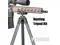 3 Leg sections, 3 leg angles of (20/55/85), tripod height from 4.3~58in.(12-144cm),Tube diameters of 28/25/22mm(1.1/0.9/0.8in).