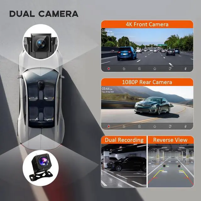 ^^ 64GB Micro SD&DVR Loop RecordingThis car tablet package includes a 64GB SD card. After inserting the card, the system will automatically enter recording mode. When the storage space is full, it will automatically overwrite old recordings, ensuring that you always have the latest driving records. And, you can lock important videos to ensure they won't be automatically deleted. ^^ 4K Front & 1080P Rear View CameraThis gps navigator for car is quipped with 4K HD front camera and a 1080P rear camera, it delivers detailed and clear dual screen recording.