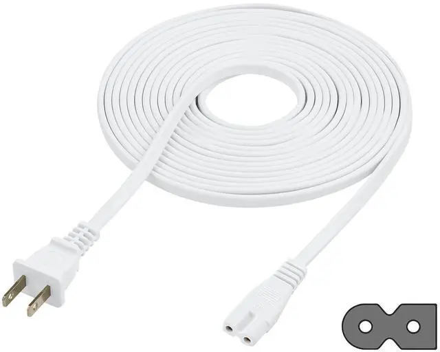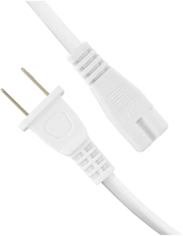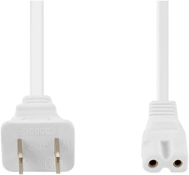 1 Extra Long 25-Foot White Polarized Power Cable. A convenient solution when your electronic device is far from your electrical outlet. 2-slot round and square connector and 2 prong male plug for standard outlets.