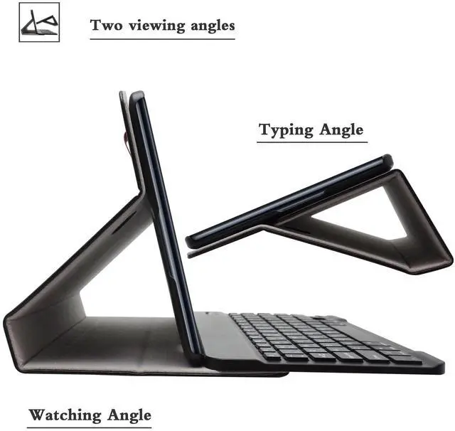 All-around Protection: Premium composition leather exterior protects your tablet against bumps, scratches and spills; Soft anti-slip interior and snug-fit frame hold your tablet securely; Precise cutouts allow full access to all features (Cameras, Speaker, Ports and Buttons). When you do not want use keyboard, it is Lightweight Ultra Slim Shell Stand PU Leather Case, eatures stand with numerous viewing angles (you can adjust as you want), it is very convenient and practical.