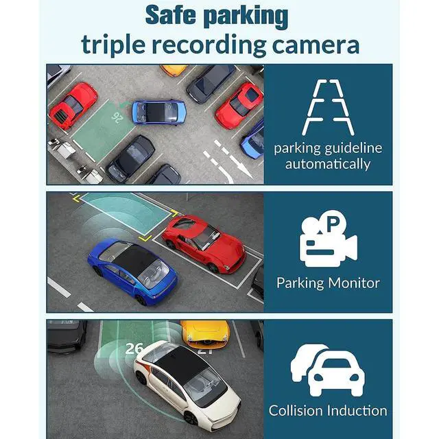 Lens All Round Monitoring: 3 lens design, covering the front, rear and inside the car, providing all round monitoring, protecting your driving safety, lengthening the cable, up to 6m to meet the installation needs of different cars, easier to walk. ^^ ^^ ^^ ^^ ^^