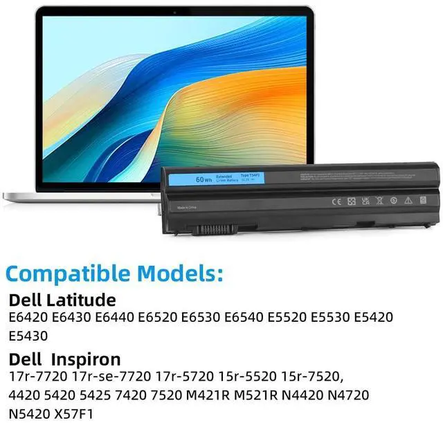 Capacity (60Wh) Model: Dell Latitude E6540 Battery ^^ Compitable for Dell Latitude E6420 E6430 E6520 E6530 E5420 E5520 E5430 E5530 battery, inspiron 4420 5420 5425 7420 4520 5520 5525 6420 6430 7520 4720 5720 7720 battery, Vostro 3460 3560 battery; for Dell Inspiron 14R 15R 17R 4420 4520 4720 5420 5520 7420 7720, for Dell T54FJ E6420 Battery, for dell latitude E6430 E6520 E6530 E5420 E5520 E5430 E5530, Fit: 312-1163 312-1242 M5Y0X HCJWT KJ321 NHXVW PRRRF T54F3 T54FJ X57F1 ^^