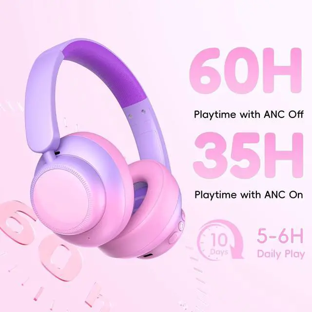 ^^ [Non-Stop Fun]: Enjoy up to 60 hours (ANC off) or 35 hours (ANC on) with advanced Bluetooth 6.0 for stable, efficient connection. Includes a USB-C and a 3.5 mm audio cablekeep listening our kids wireless headphones even when the battery runs out. No more battery anxiety, ever! ^^ [Built Tough, Worn