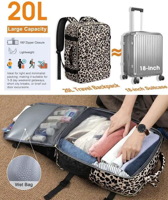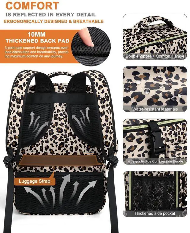 Backpack: Tailored with adjustable shoulder straps and a 10MM thickened three-point back support panel. This thoughtful construction improves airflow and evenly distributes weight across your back, ensuring maximum comfort even in extended wear. The backpack mode functions as a stylish daypack, the luggage strap allows you to secure it to your suitcase, adding extra convenience., and side handle helps you seamlessly transition from a backpack to a carry-on bag. ^^ 4 Unpate Side Compression Buckle & Double Zipper: 4 upgraded side compression buckles let you easily adjust the bag to keep everything in place, no more rummaging through a jumbled mess, and eliminate your concerns about unintended openings. The matching double zippers add a touch of style while making it easy to search your bag. Thickened side mesh pocket perfect for your umbrella and water bottle. Every little thoughtful feature is designed to make your life easier and your travels smoother. ^^ Water-resistant Materials & Wonderful Customer service: Our backpacks are made of new-generation water-resistant polyester to protect your belongings from light rain and splashes. It functions perfectly as a college backpack, a travel companion, or a reliable commuter bag for work, seamlessly adapting to your daily needs. Excellence Customer Service-Whatever you need, whenever you need it, we are here for you!