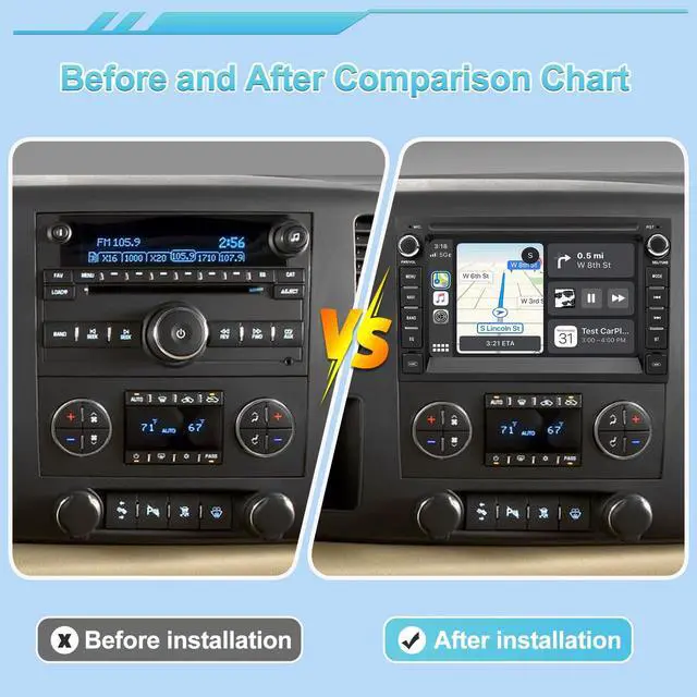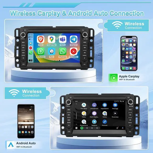 Smartphone Integration: Built-in CarPlay and Android Auto allow you to project your phones apps, messages, calls, and navigation onto the stereo screen for safer, easier access while driving ^^ Connectivity and