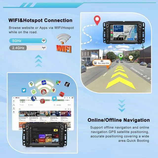 Online Features: Enjoy seamless Bluetooth hands-free calling and audio streaming, plus integrated WiFi for online updates, app downloads, and online services on the go ^^ GPS Navigation (Online