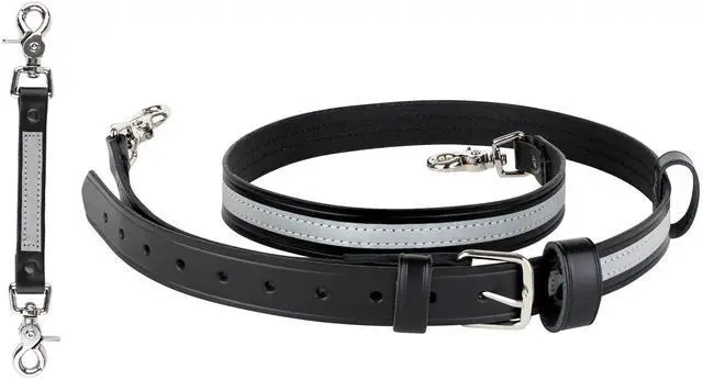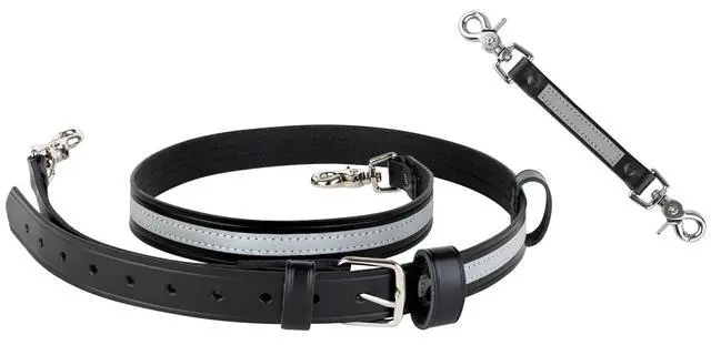 Radio Strap Features: 1.25" wide heavy duty leather. Adjustable Length From 55" - 64"Leather mic loop. Drum Dyed LeatherMates to a radio holder with scissor snaps.