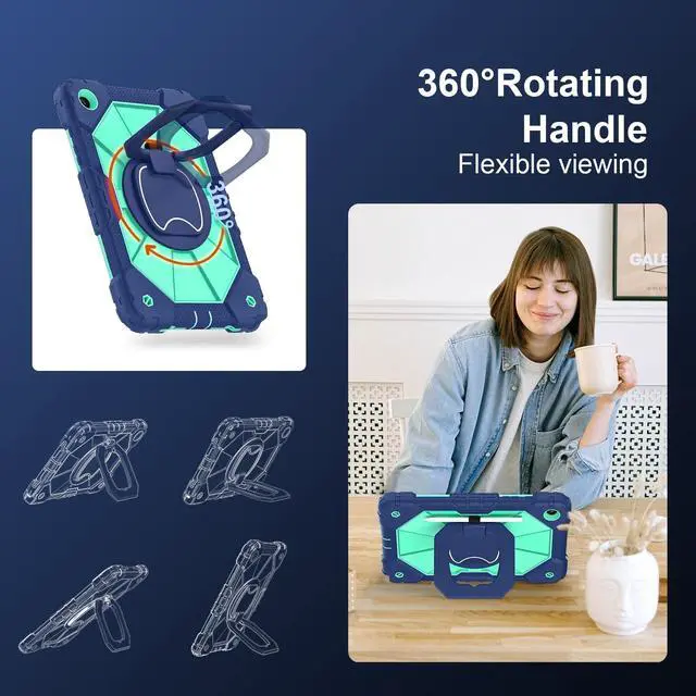 CompatibilityMade for Samsung Galaxy Tab A11+ Plus /A9+ Plus 11 inch ( 10.9 inch), 2025/2023 model SM-X230/X235/X236, SM-X210/X216/218. Not fit any other tablets ^^ Convertible Rotating StandScnioy Galaxy Tab A11+ case equipped with a 360 rotating and 180 flipping stand, which enables multiple viewing angles. You can adjust the angle for both Portrait and Landscape, and adapt the screen angle to match your eye level or avoid overhead light glare. Comfort for reading long articles, scrolling social media, or following vertical recipes. Moreover, the ring stand can be used as a hook to hang on a kitchen cabinet or wherever you need ^^ Mil-Grade Drop ProtectionThis A9+ plus case uses a hard inner shell to maintain structural integrity and a soft outer silicone bumper to absorb vibrations.