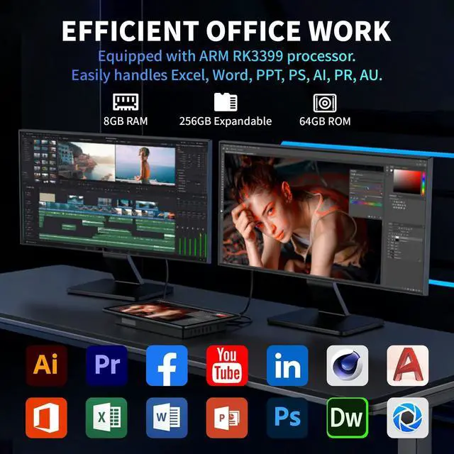 Powerful Performance for Multitasking Equipped with the Rockchip RK3399 hexa-core processor (Dual-core Cortex-A72 + Quad-core A53) up to 1.8GH z, 4GB RAM, and 64GB eMMC storage. This robust combo delivers smooth and reliable performance for running digital signage software, POS systems, monitoring dashboards, or light industrial applications without lag. ^^ Comprehensive Industrial-Grade Connectivity Designed for easy integration, it features a rich set of