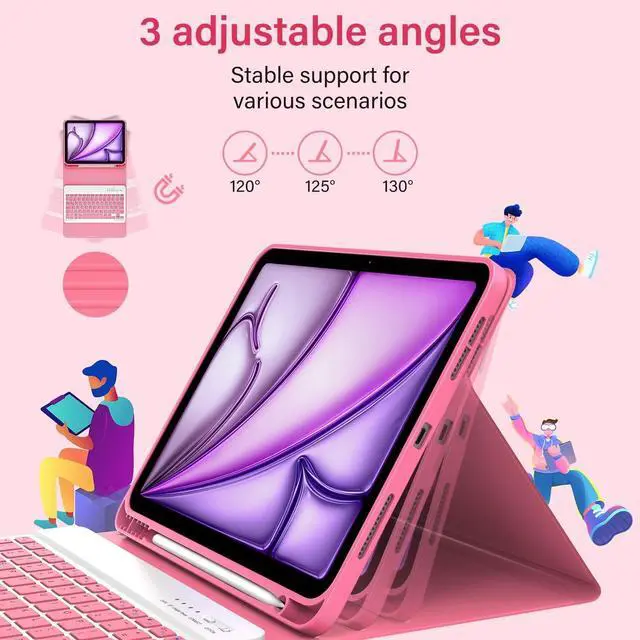 Mini Laptop Case: keyboard for iPad air 11 inch turn your iPad Air 4th/5th Gen into a mini laptop in seconds. The adjustable, detachable keyboard lets you change positions anytime for comfort and stability. Lightweight and travel-friendly. Use iPad air 11 keyboard for work, travel, school, cafes, flights, meetings, note-taking ^^