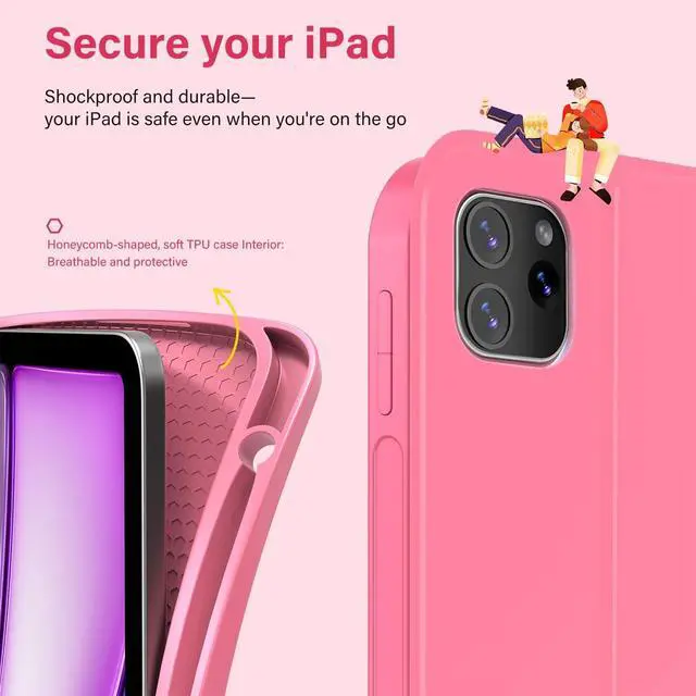 Honeycomb Cushion & Heat Protection: The inner honeycomb grid lining absorbs shock and improves airflow to reduce overheating, iPad 11 case with keyboard helping extend your iPads lifespan by over 30%. Ideal for long typing sessions, video streaming, and extended work or study hours where heat buildup matters