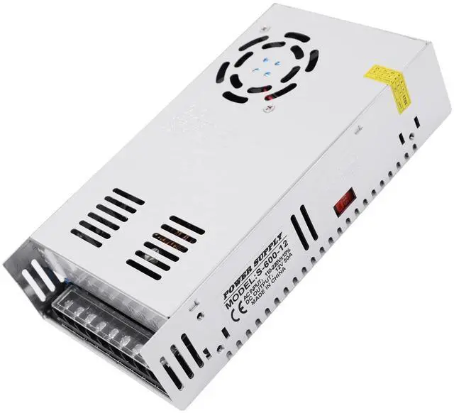 This 12V 50A 600W regulated switching power supply provides stable DC output for a variety of electronic and industrial applications. It efficiently converts AC 110V or 220V to DC 12V, delivering steady current and low ripple output. The durable perforated metal housing enhances cooling and ensures reliable long-term operation. Perfect for LED lighting, CCTV systems, 3D printers, communication devices, and DIY electronics.