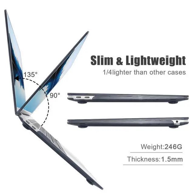 ^^ Design & Function: Two pieces snap-on design, easy to install and take off. The precise cutting design allows you to access all the ports of your macbook m2 a2338. Fully vented for safe heat disbursement. The two rows vent slots at the bottom of the case can easily keep your pro 13 inch m1 device cool. The four raised rubber feet keep your laptop stable and safe. ^^ 4in1 Bundle