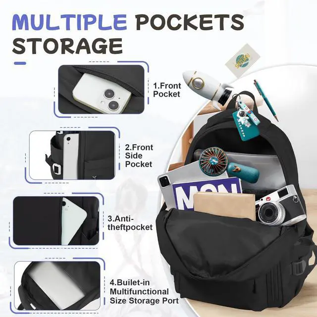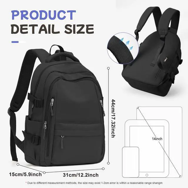 QUALITY MATERIAL: Crafted from high-quality water-resistant nylon, this lightweight backpack is durable, tear-resistant, and easy to clean. Features sturdy two-way zippers for smooth operation, adjustable padded shoulder straps for comfort, and buckle-secured side pockets to prevent items from falling out.