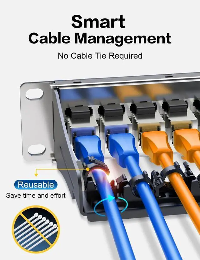 Smart Cable ManagementThe 12 Port CAT6A patch panel does not need cable ties, making it easier to organize wires, and it is reusable and more environmentally.