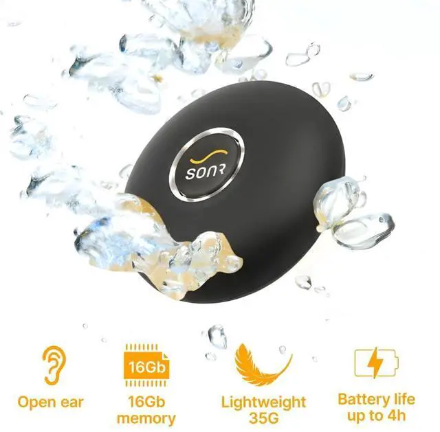 • No Earbuds, No LimitsBone conduction technology delivers clear, balanced sound through your cheekbones. Perfect for pool or ocean swimming.