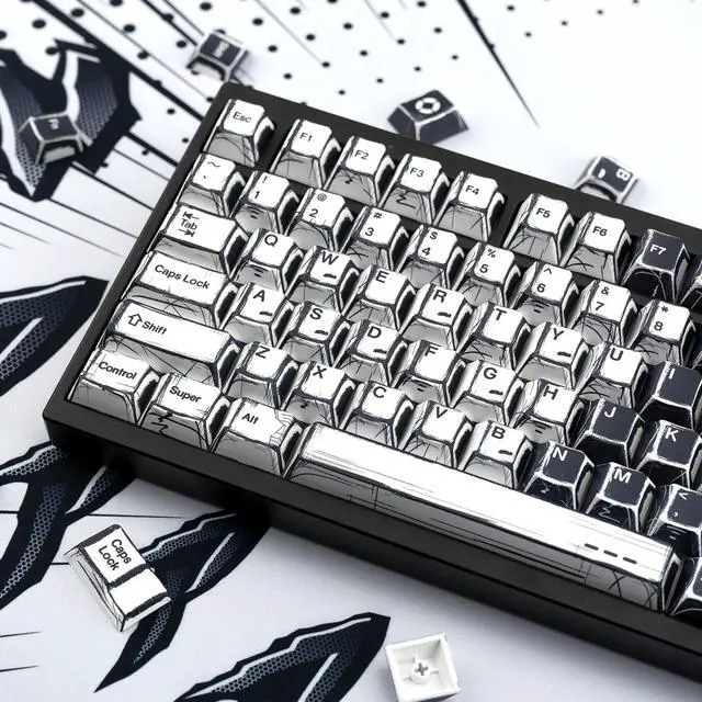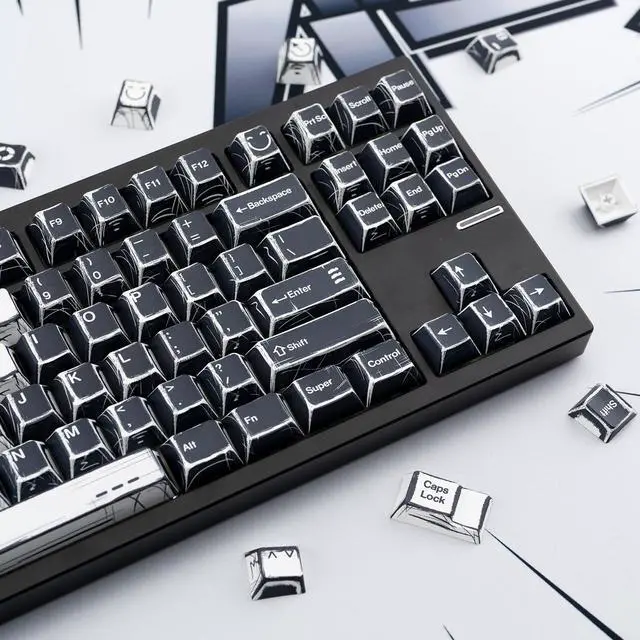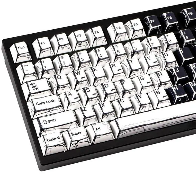 Manga Themed Keycaps: Fashionable black and white color clash design, combining manga style and keycap design, retains the charm of classic manga style while giving users a new interactive experience, perfect for those who love anime and manga2.