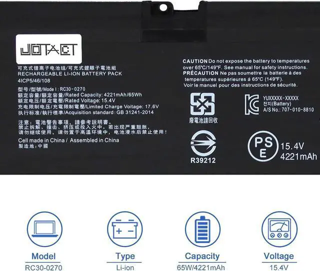 Battery Life: Up to 500 recharge cycles over the life of the battery. ^^ Compatible original Battery CodeRC30-0270 RZ09-0270 RZ09-03006 RZ09-03009 4ICP5/46/108. ^^ Compatible Laptop ModelsCompatible with Razer Blade 15 2018 (i7-8750H GTX1060/RTX2070), Razer Blade 15 2019 (i7-9750H GTX1060/RTX 2060/RTX2070), Razer Blade 15 RZ09-0270 RZ09-02705 RZ09-02705E76 RZ09-02705E75 RZ09-02705J75-R3J1 RZ09-02705J76 RZ09-02705W75, RZ09-0300 RZ09-03006 RZ09-03009 RZ09-03009E97 RZ09-03006E92 RZ09-03017E02