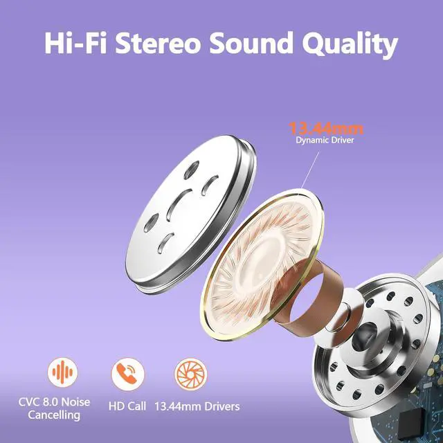 128 HOURS PLAYTIME AND LED DIGITAL DISPLAY: Q22 ear buds have an extra-long battery life of 8 hours of playtime and a 2600 mAh charging case for 120 hours of music playback; Wireless earbuds are equipped with a dual LED digital display that highlights the remaining power in the charging case and the charging status of the earbuds, allowing for efficient use of the ear buds and timely charging of the earphones; Bluetooth headphones over the ear utilize tycp-C fast charging technology, which provides 2 hours of music listening time in 10 mins of charging ^^ HIGH FIDUCIENT SOUND QUALITY AND ENC CLEAR CALLS: With 13 mm dual-layer graphene diaphragm drivers and equipped with hybrid ENC noise cancellation and Hi-Fi technology, Q22 bluetooth earbuds unique bass enhancement algorithms feature powerful bass and pristine sound, for a breathtaking sound experience that is as immersive as it is acoustic; Equipped with a high-quality ENC noise-cancelling microphone that passively eliminates 90% of background noise, you can enjoy a first-class call experience wherever you are ^^ UPGRADED BLUETOOTH 5.3