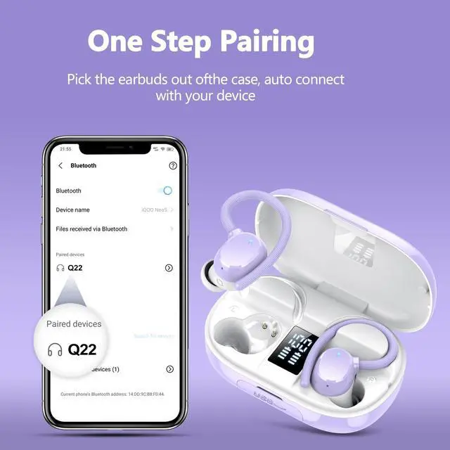 COMPATIBILITY AND SMART TOUCH CONTROL: Q22 earbuds wireless bluetooth are compatible with a range of bluetooth devices, including smartphones, TVs and laptops, so you don't need to worry about compatibility issues; wireless ear buds are equipped with smart touch technology, which makes it easy to control without the need to operate your cell phone, such as switching tracks, adjusting the volume, answering/hanging up phone calls, voice assistant and other functions, so that you can listen to your music while you are running, reading, or working ^^