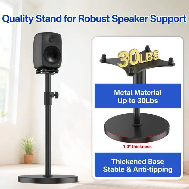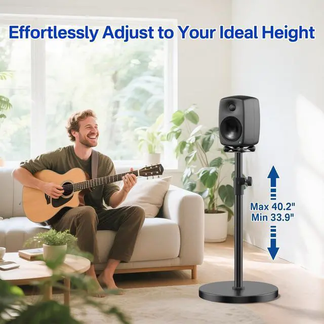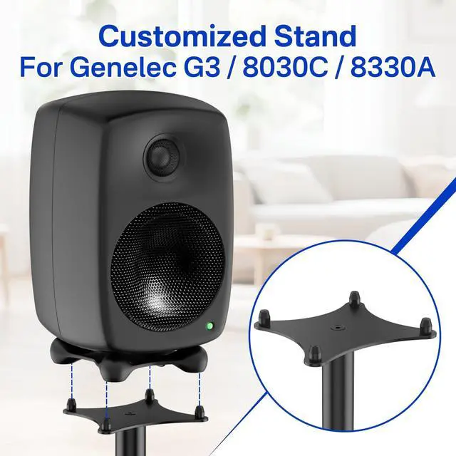 Tailor for Genelec Speakers - Our surround sound speaker stand are perfect designed for Genelec G3 8030C 8330A speaker stand, with a tightly fitted proprietary slot to ensure a perfect fit and no compatibility issues. Safe and secure support for the speakers at all times ensures that the speakers are in the optimum position for accurate sound reproduction. ^^ Height Adjustable - Easily matches different audio-visual scenes with an adjustable height range from 33.9" to 40.2". Whether sitting or standing, this speaker floor stands for Genelec speakers places your speaker at the perfect level for immersive, room-filling sound.