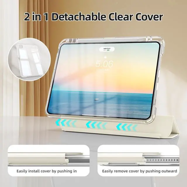 kenke Hybrid Case for iPad Air 13 Inch M3/M2 (2025/2024), Pro 12.9 Inch (6th/5th Generation, 2022/2021) with Pencil Holder, 2 in 1 Detachable Cover with Clear Hard Back, Auto Sleep/Wake, Cream White