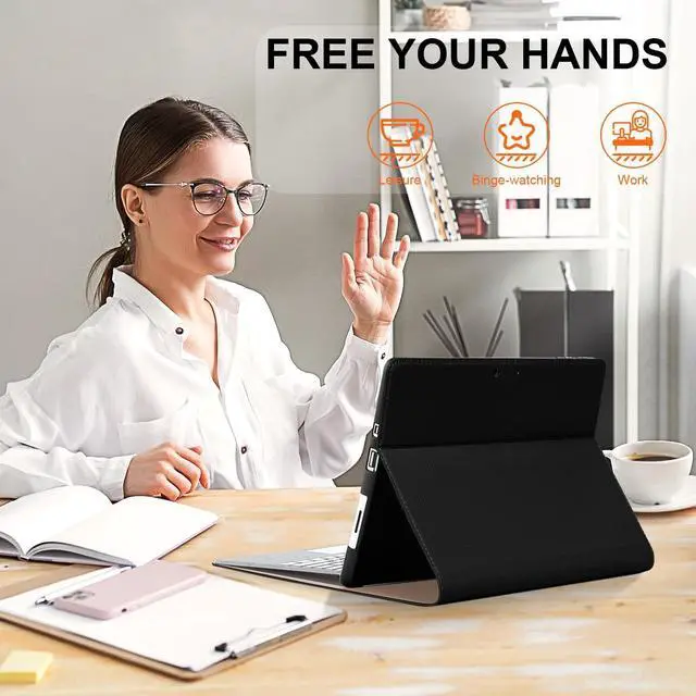 The dedicated Pen Holder eliminates the hassle of searching for your stylus, and the full compatibility with the Type Cover means you can transition from laptop to tablet mode effortlessly. Designed for Durability and Everyday Use Constructed from premium microfiber leather, this case is built to last. It resists fingerprints, dirt, and minor impacts, keeping your device looking new. The interior features a soft, scratch-proof lining for added screen protection. The magnetic closure secures your device, while the precise cutouts allow for easy charging and full use of all ports and buttons.
