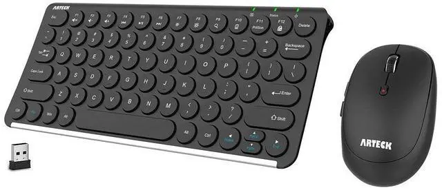 Industry Leading Ergonomic DesignStainless steel material gives heavy duty feeling and the low-profile keys offer quiet and comfortable typing. Ergonomic mouse reduce the stress with comfortable use. The mouse DPI switch allows you to change the speed of moving cursor, 2 side buttons allows you to control page forward and backward for more productive work. Easy Setup and UseJust simply insert the nano USB receiver (stored in the back of the mouse) into your computer like desktop or laptop, then the keyboard and the mouse can be used instantly. No need driver. The keyboard and mouse use the same USB receiver.