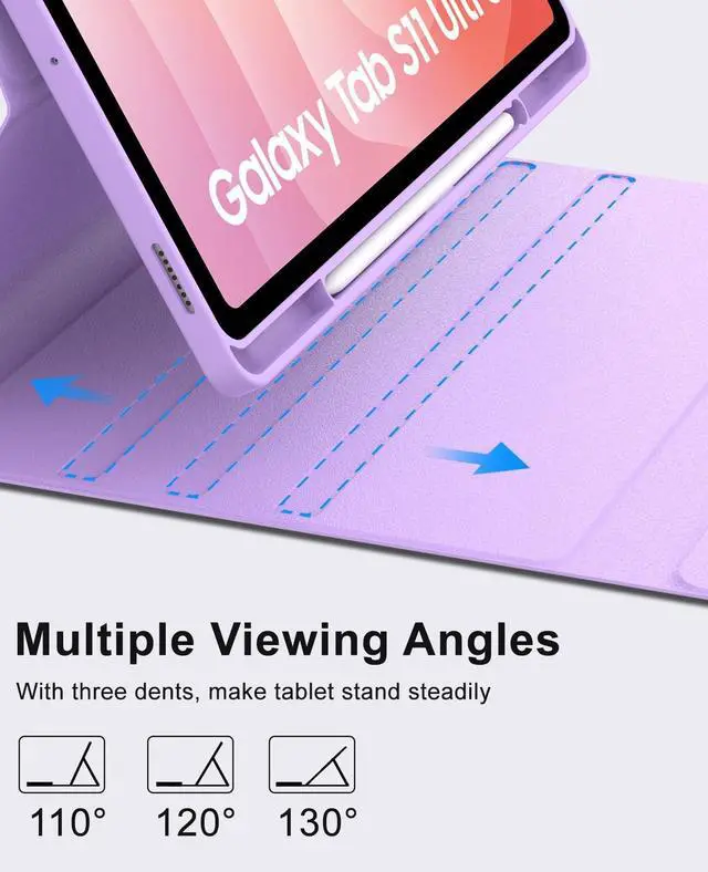 Adjustable Viewing AnglesThis for 14.6inch Galaxy Tab S11 Ultra sturdy leather case with keyboard has 3 anti-slip grooves to adjust the viewing angle as you like, make your tablet stand steadily. Turn your S11 ultra tablet into a laptop in one second, perfect for studying, working, writing, painting, reading or watching videos
