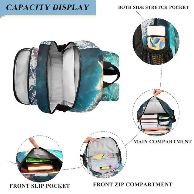 Size: 12.9" X 6.7" X 17.7", big backpack features a padded compartment sleeve that fits 14", 15", and 16" tablets or laptops and your lunch, school supplies, personal items.