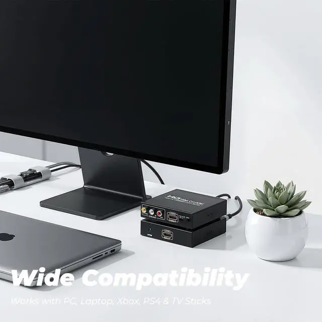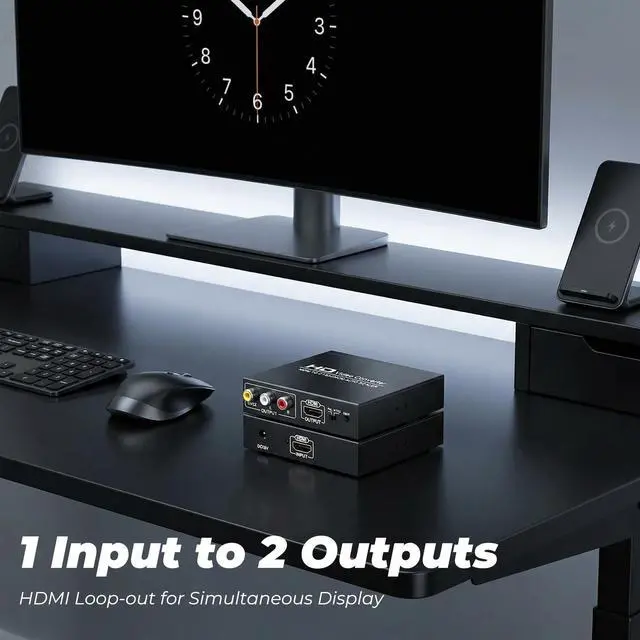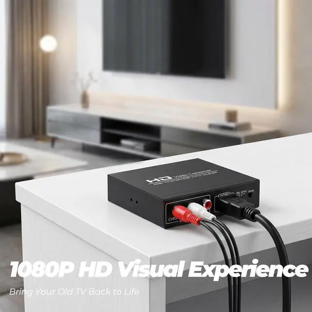 Versatile Signal Conversion: HDMI to RCA Converter seamlessly converts digital HDTV 1080P (60Hz) and lower signals into analog AV (CVBS) composite video and FL/FR stereo audio signals ^^
