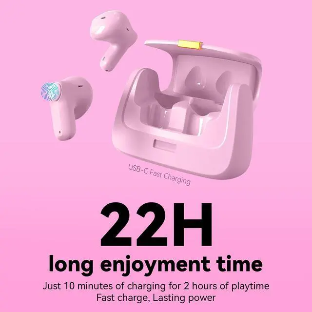 Touch Operation: Take full control with a simple tap. Answer or end calls, skip tracks, or switch between music and gaming modesall without reaching for your phone. A touch interface ensures a hands-free experience, perfect for life on the go. ^^ Up to 22 Hours of Playtime with USB-C