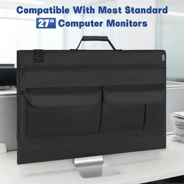 Monitor Carrying Case, Travel Case for 27'' LCD Screens and Monitors Protective Bag Monitor Dust Cover with Carry Handle & Adjustable Shoulder Strap Compatible with Desktop Computer and Accessories