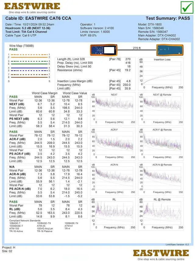 DSX-8000DSX-8000 TIA Cat 6 Channel test. ^^ Copper clad aluminum (CCA) conductorThis cable is made of copper-clad aluminum to provide a good conductor at a low cost. Therefore, it is not UL, ETL certified. CCA cables are not recommended for power over Ethernet applications. We cannot guarantee that this cable will work for all applications - it is the installer's responsibility to test their application-specific cable before completing installation. ^^